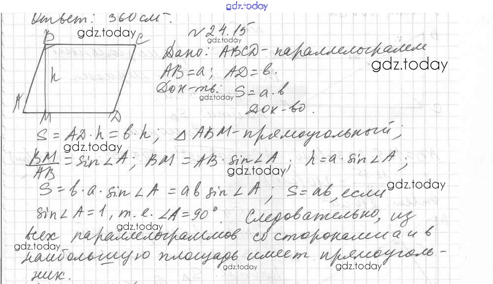 Ответы к § 24. Площадь параллелограмма Решение к главе 5. Площадь многоугольника 15 Учебнику по Геометрии для 8 класса Мерзляк, Поляков Углубленный уровень Вентана-граф Алгоритм успеха 2020