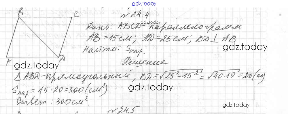 Ответы к § 24. Площадь параллелограмма Решение к главе 5. Площадь многоугольника 4 Учебнику по Геометрии для 8 класса Мерзляк, Поляков Углубленный уровень Вентана-граф Алгоритм успеха 2020