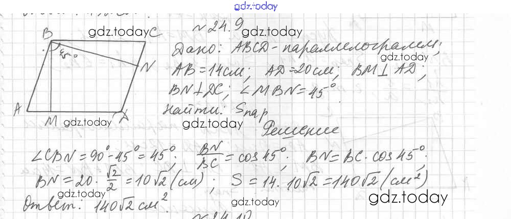 Ответы к § 24. Площадь параллелограмма Решение к главе 5. Площадь многоугольника 9 Учебнику по Геометрии для 8 класса Мерзляк, Поляков Углубленный уровень Вентана-граф Алгоритм успеха 2020