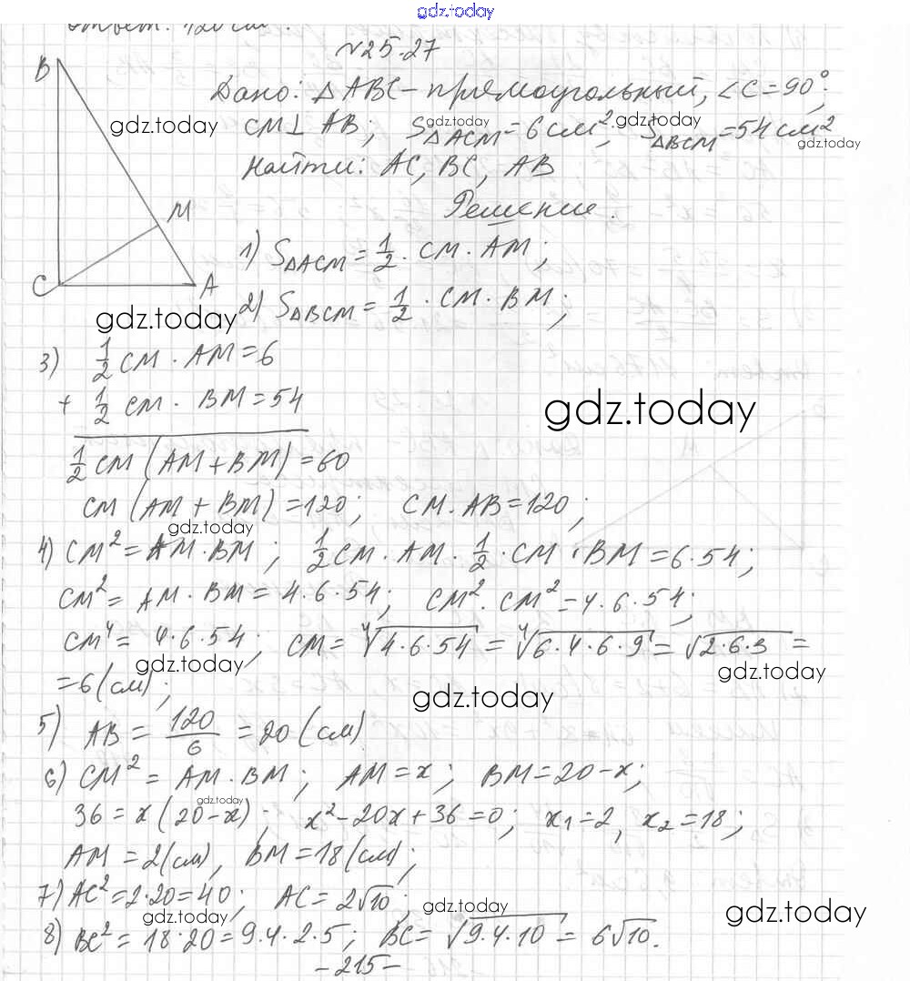 Ответы к § 25. Площадь треугольника Решение к главе 5. Площадь многоугольника 27 Учебнику по Геометрии для 8 класса Мерзляк, Поляков Углубленный уровень Вентана-граф Алгоритм успеха 2020