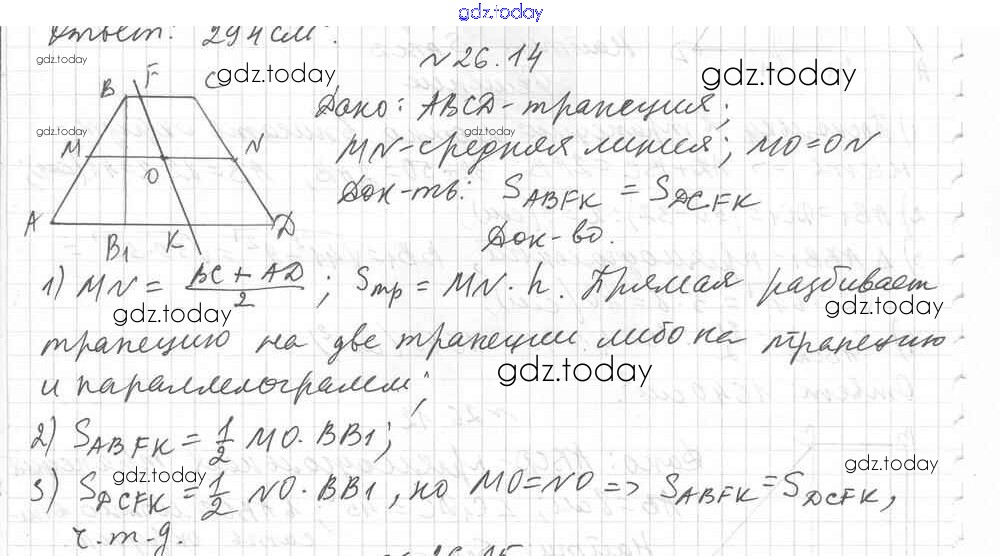 Ответы к § 26. Площадь трапеции Решение к главе 5. Площадь многоугольника 14 Учебнику по Геометрии для 8 класса Мерзляк, Поляков Углубленный уровень Вентана-граф Алгоритм успеха 2020