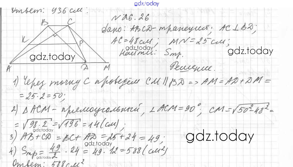 Ответы к § 26. Площадь трапеции Решение к главе 5. Площадь многоугольника 26 Учебнику по Геометрии для 8 класса Мерзляк, Поляков Углубленный уровень Вентана-граф Алгоритм успеха 2020