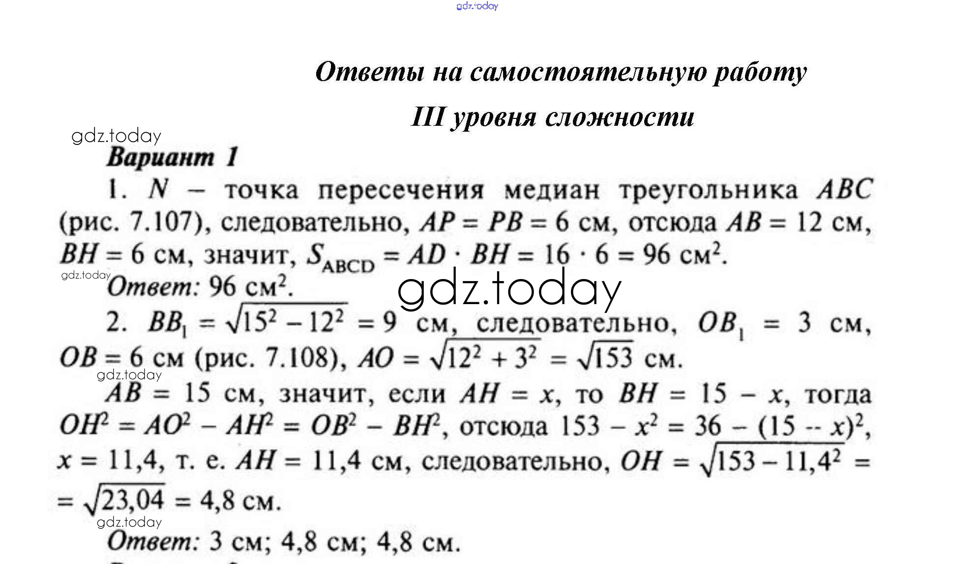 Ответы к Уровень сложности 3 Самостоятельная работа 10 1 Поурочным разработкам по Геометрии для 8 класса Гаврилова ВАКО 2010