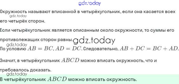 Ответы к Решение. §10. Описанная и вписанная окружности четырёхугольника 163 Рабочей тетради по Геометрии для 8 класса Мерзляк, Полонский Вентана-граф Алгоритм успеха 2021
