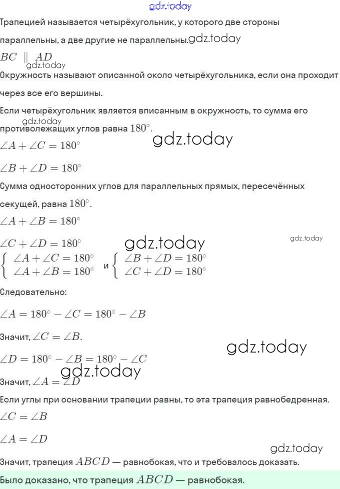 Ответы к Решение. §10. Описанная и вписанная окружности четырёхугольника 165 Рабочей тетради по Геометрии для 8 класса Мерзляк, Полонский Вентана-граф Алгоритм успеха 2021