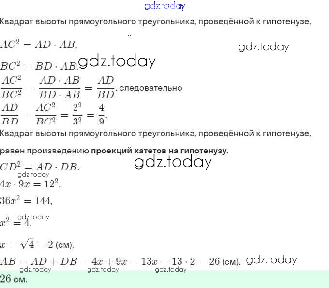 Ответы к Решение. §15. Метрические соотношения в прямоугольном треугольнике 258 Рабочей тетради по Геометрии для 8 класса Мерзляк, Полонский Вентана-граф Алгоритм успеха 2021