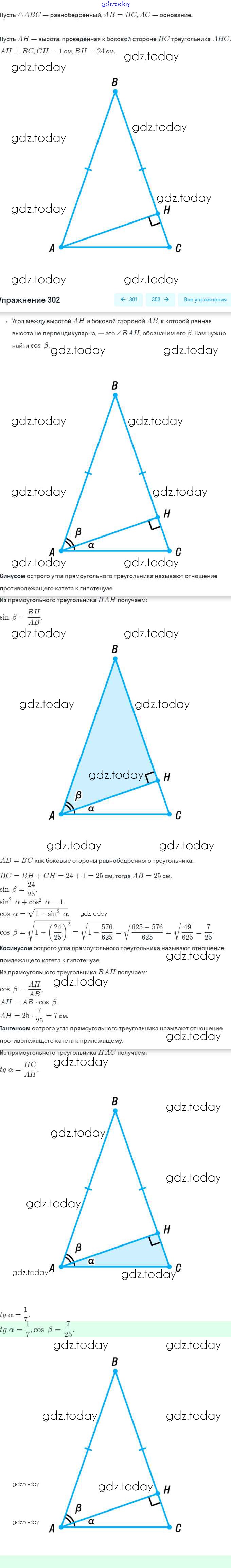 Ответы к Решение. §17. Тригонометрические функции острого угла прямоугольного треугольника 302 Рабочей тетради по Геометрии для 8 класса Мерзляк, Полонский Вентана-граф Алгоритм успеха 2021
