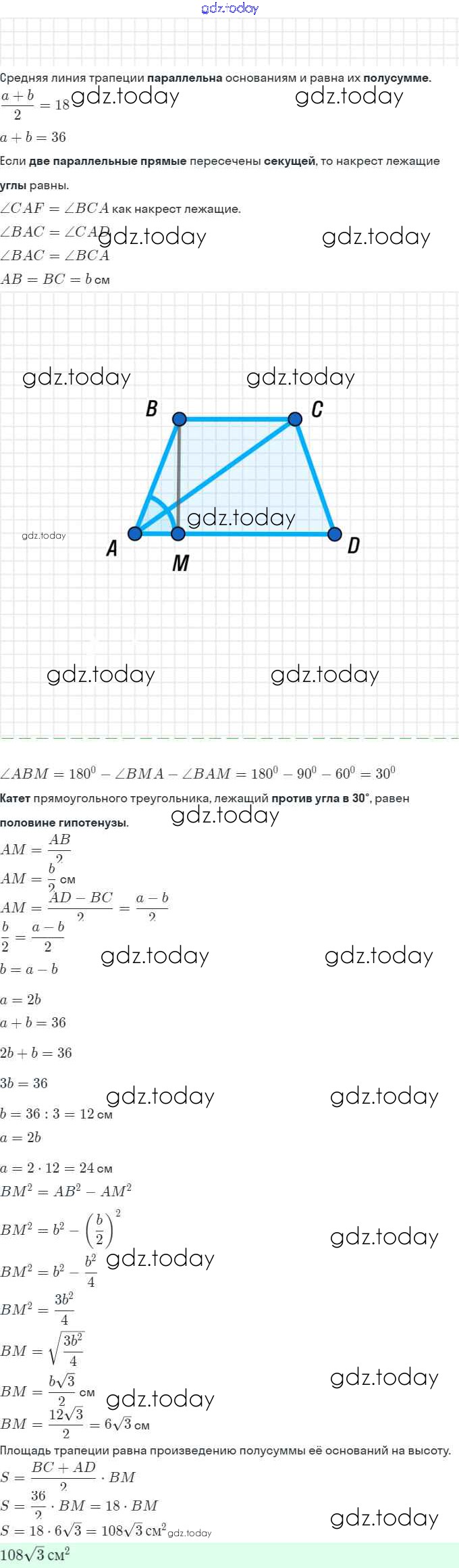 Ответы к Решение. §23. Площадь трапеции 437 Рабочей тетради по Геометрии для 8 класса Мерзляк, Полонский Вентана-граф Алгоритм успеха 2021