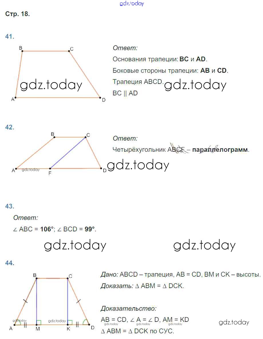 Ответы к Страницы (решение) 18 Рабочей тетради по Геометрии для 8 класса Мищенко Экзамен УМК 2016