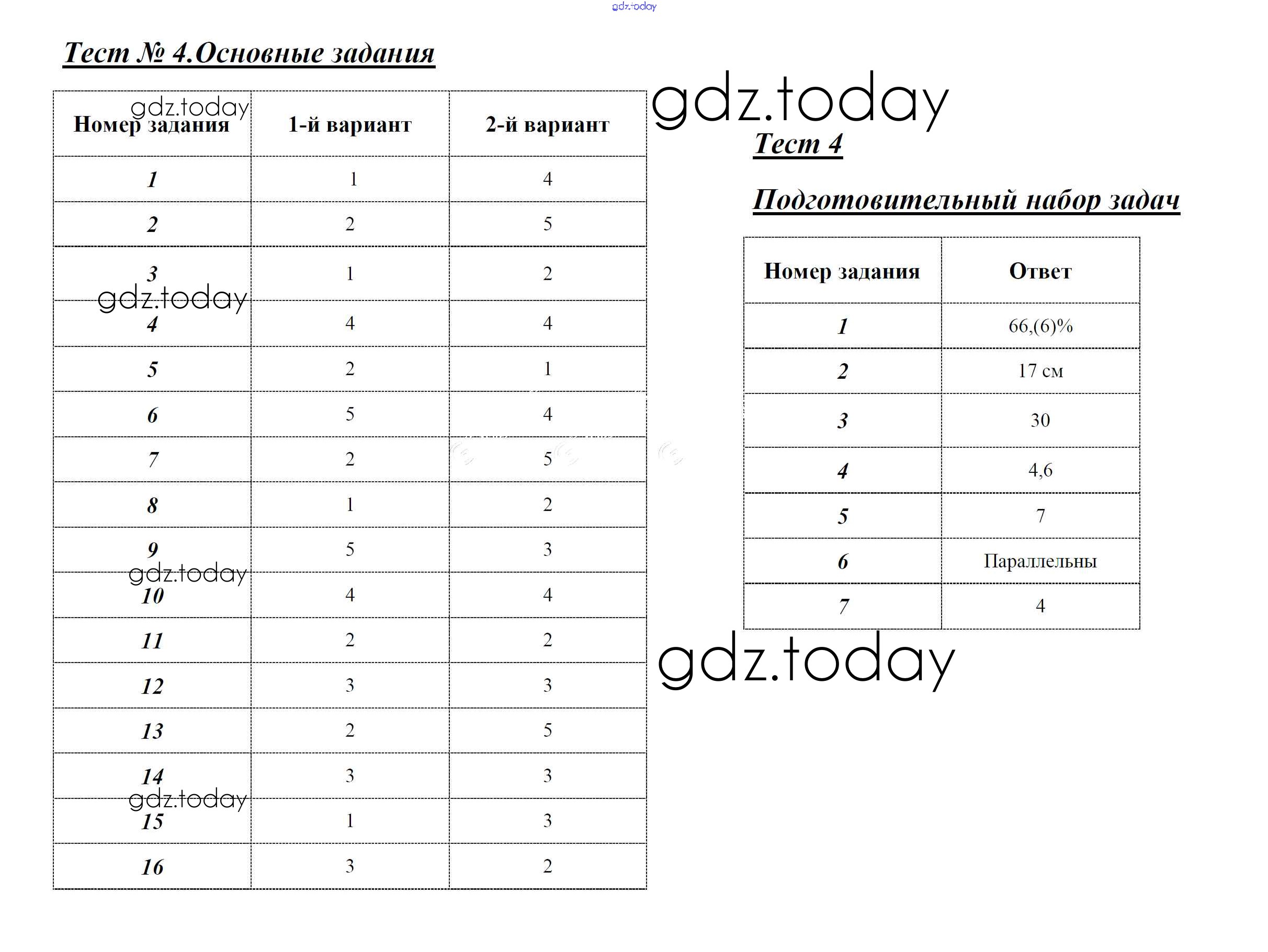 На страницах сайта gdz.today вы найдете учебный и вспомогательный материал, направленный на улучшения знаний школьной программы. ГДЗ - онлайн мир знаний Решение к тестам Тест №4 Тестам по Геометрии для 8 класса Звавич, Потоскуев Экзамен УМК 2013