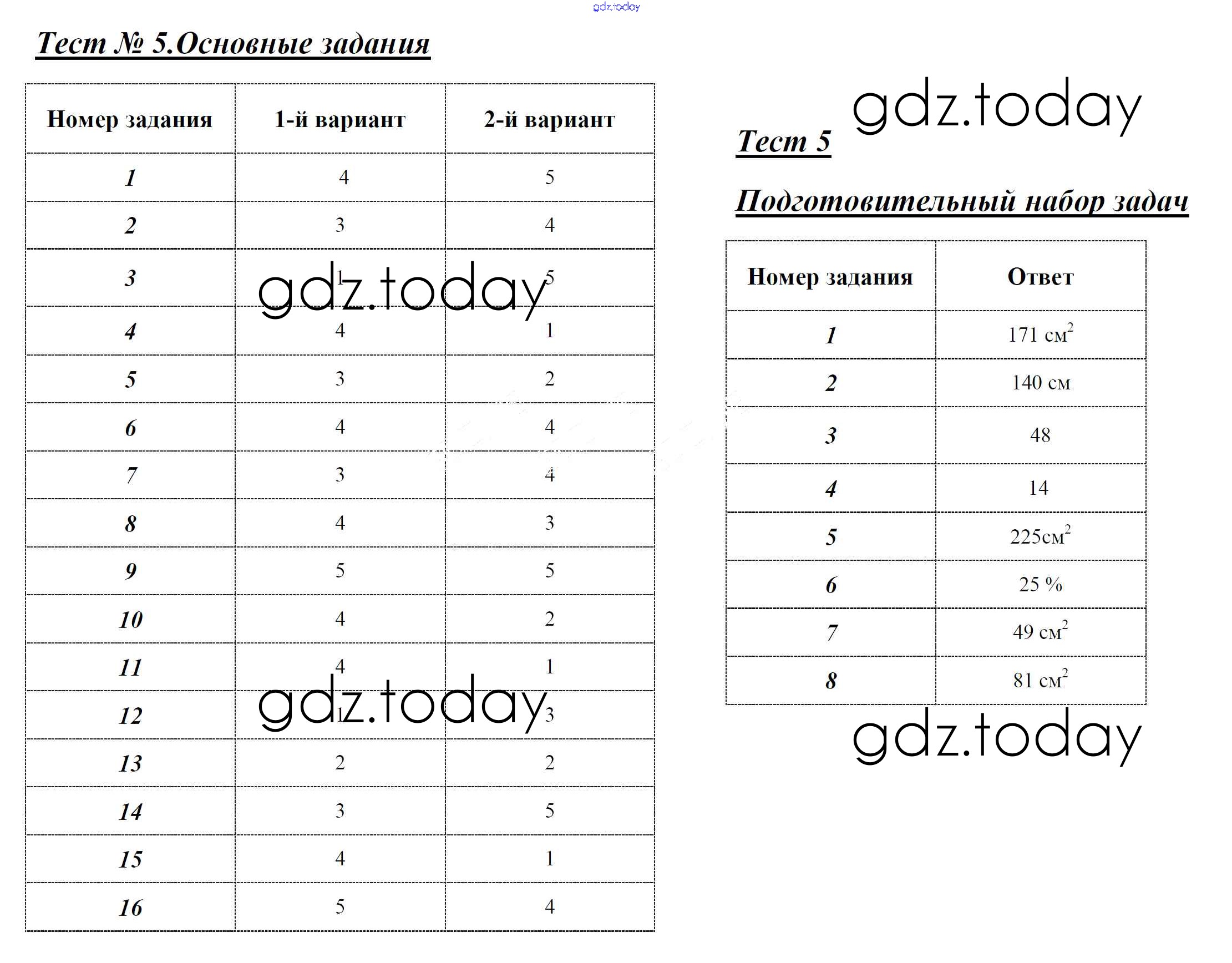 На страницах сайта gdz.today вы найдете учебный и вспомогательный материал, направленный на улучшения знаний школьной программы. ГДЗ - онлайн мир знаний Решение к тестам Тест №5 Тестам по Геометрии для 8 класса Звавич, Потоскуев Экзамен УМК 2013