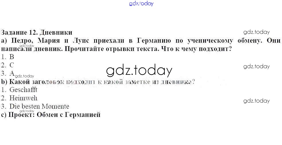 На страницах сайта gdz.today вы найдете учебный и вспомогательный материал, направленный на улучшения знаний школьной программы. ГДЗ - онлайн мир знаний Решение к главе 2. Фитнес и спорт 12 Учебнику по Немецкому языку для 8 класса Аверин, Джин Просвещение Horizonte 2016