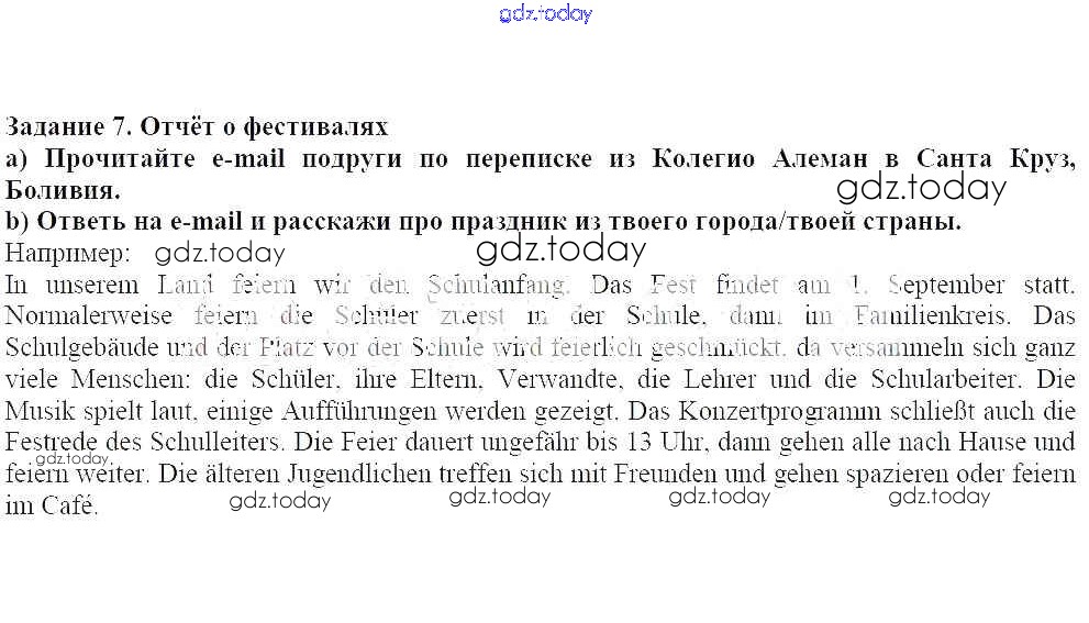 На страницах сайта gdz.today вы найдете учебный и вспомогательный материал, направленный на улучшения знаний школьной программы. ГДЗ - онлайн мир знаний Решение к главе 3. Наши праздники 7 Учебнику по Немецкому языку для 8 класса Аверин, Джин Просвещение Horizonte 2016