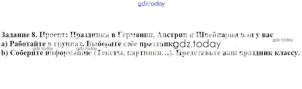 На страницах сайта gdz.today вы найдете учебный и вспомогательный материал, направленный на улучшения знаний школьной программы. ГДЗ - онлайн мир знаний Решение к главе 3. Наши праздники 8 Учебнику по Немецкому языку для 8 класса Аверин, Джин Просвещение Horizonte 2016