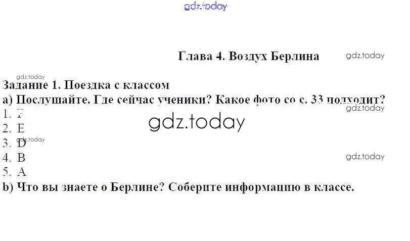 На страницах сайта gdz.today вы найдете учебный и вспомогательный материал, направленный на улучшения знаний школьной программы. ГДЗ - онлайн мир знаний Решение к главе 4. Воздух Берлина 1 Учебнику по Немецкому языку для 8 класса Аверин, Джин Просвещение Horizonte 2016