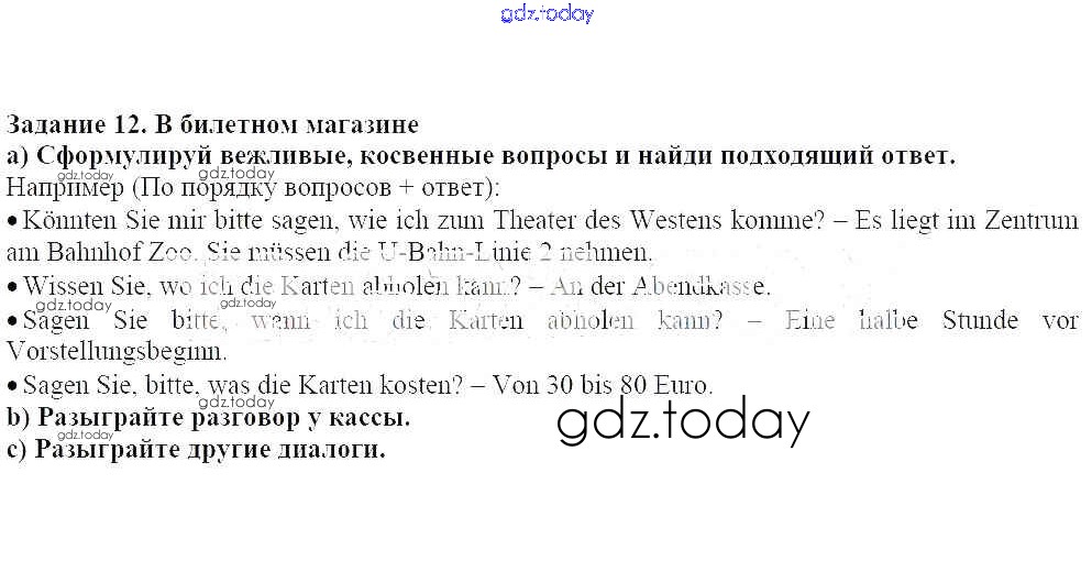 На страницах сайта gdz.today вы найдете учебный и вспомогательный материал, направленный на улучшения знаний школьной программы. ГДЗ - онлайн мир знаний Решение к главе 4. Воздух Берлина 12 Учебнику по Немецкому языку для 8 класса Аверин, Джин Просвещение Horizonte 2016