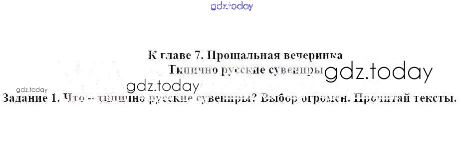 На страницах сайта gdz.today вы найдете учебный и вспомогательный материал, направленный на улучшения знаний школьной программы. ГДЗ - онлайн мир знаний Типично русские сувениры Решение к главе 7. Путешествие по Рейну 1 Учебнику по Немецкому языку для 8 класса Аверин, Джин Просвещение Horizonte 2016
