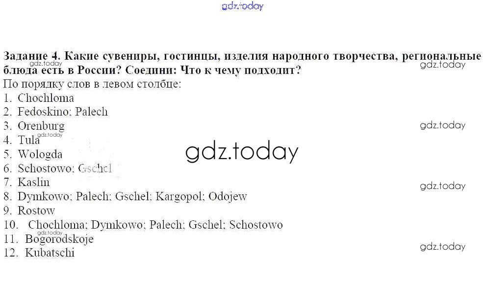 На страницах сайта gdz.today вы найдете учебный и вспомогательный материал, направленный на улучшения знаний школьной программы. ГДЗ - онлайн мир знаний Типично русские сувениры Решение к главе 7. Путешествие по Рейну 4 Учебнику по Немецкому языку для 8 класса Аверин, Джин Просвещение Horizonte 2016