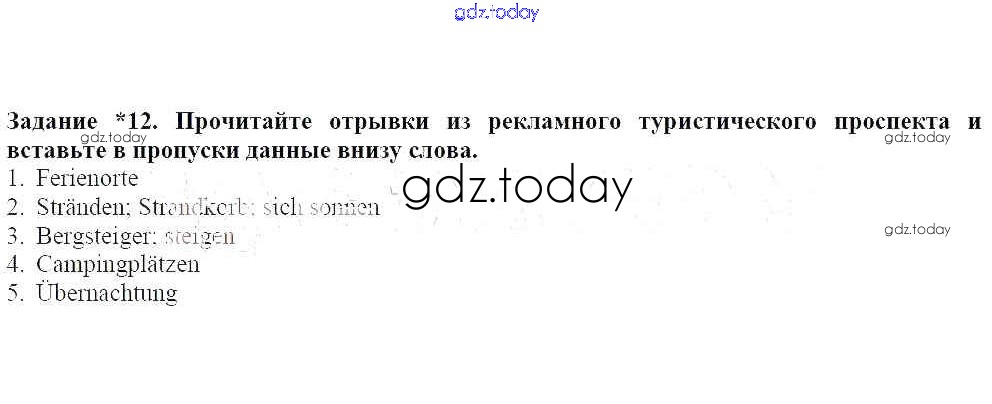 На страницах сайта gdz.today вы найдете учебный и вспомогательный материал, направленный на улучшения знаний школьной программы. ГДЗ - онлайн мир знаний Раздел 1 Решение к главе 1. Летом было замечательно! 12 Учебнику по Немецкому языку для 8 класса Бим, Садомова Просвещение 2014