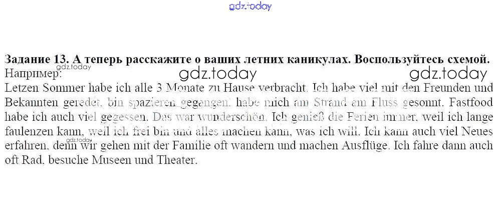 На страницах сайта gdz.today вы найдете учебный и вспомогательный материал, направленный на улучшения знаний школьной программы. ГДЗ - онлайн мир знаний Раздел 1 Решение к главе 1. Летом было замечательно! 13 Учебнику по Немецкому языку для 8 класса Бим, Садомова Просвещение 2014