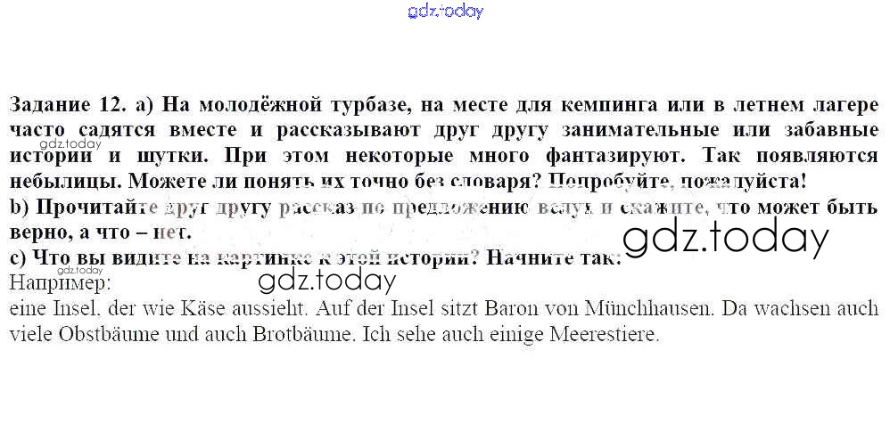 На страницах сайта gdz.today вы найдете учебный и вспомогательный материал, направленный на улучшения знаний школьной программы. ГДЗ - онлайн мир знаний Раздел 2 Решение к главе 1. Летом было замечательно! 12 Учебнику по Немецкому языку для 8 класса Бим, Садомова Просвещение 2014