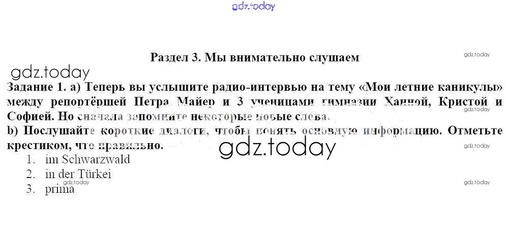 На страницах сайта gdz.today вы найдете учебный и вспомогательный материал, направленный на улучшения знаний школьной программы. ГДЗ - онлайн мир знаний Раздел 3 Решение к главе 1. Летом было замечательно! 1 Учебнику по Немецкому языку для 8 класса Бим, Садомова Просвещение 2014