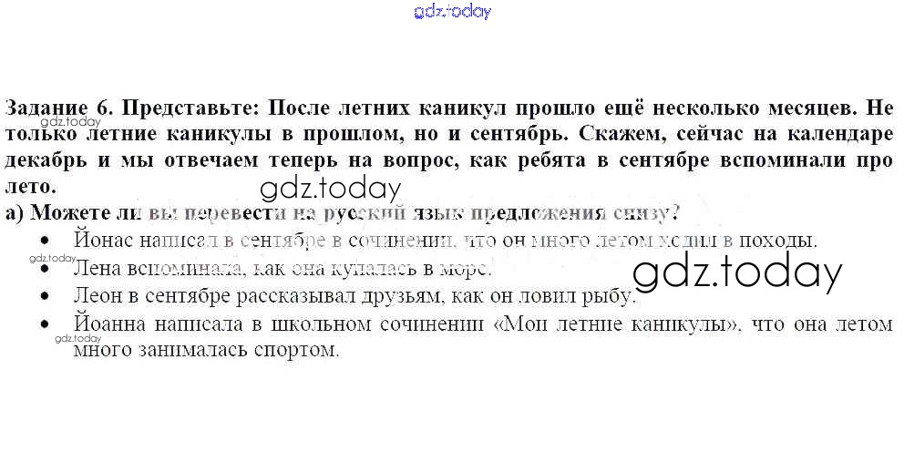 На страницах сайта gdz.today вы найдете учебный и вспомогательный материал, направленный на улучшения знаний школьной программы. ГДЗ - онлайн мир знаний Раздел 4 Решение к главе 1. Летом было замечательно! 6 Учебнику по Немецкому языку для 8 класса Бим, Садомова Просвещение 2014