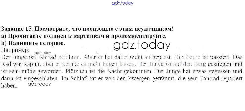 На страницах сайта gdz.today вы найдете учебный и вспомогательный материал, направленный на улучшения знаний школьной программы. ГДЗ - онлайн мир знаний Раздел 6 Решение к главе 1. Летом было замечательно! 15 Учебнику по Немецкому языку для 8 класса Бим, Садомова Просвещение 2014