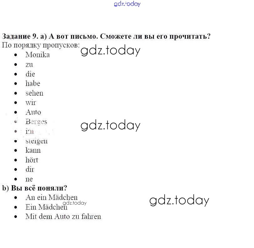 На страницах сайта gdz.today вы найдете учебный и вспомогательный материал, направленный на улучшения знаний школьной программы. ГДЗ - онлайн мир знаний Раздел 6 Решение к главе 1. Летом было замечательно! 9 Учебнику по Немецкому языку для 8 класса Бим, Садомова Просвещение 2014