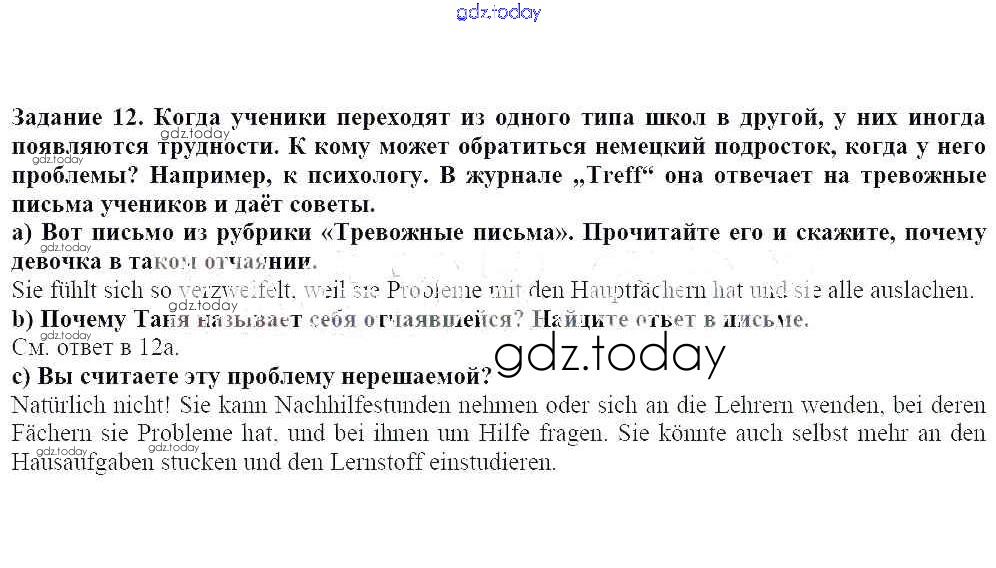 На страницах сайта gdz.today вы найдете учебный и вспомогательный материал, направленный на улучшения знаний школьной программы. ГДЗ - онлайн мир знаний Раздел 1 Решение к главе 2. Но теперь давно уже школа! 12 Учебнику по Немецкому языку для 8 класса Бим, Садомова Просвещение 2014