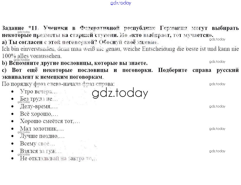 На страницах сайта gdz.today вы найдете учебный и вспомогательный материал, направленный на улучшения знаний школьной программы. ГДЗ - онлайн мир знаний Раздел 5 Решение к главе 2. Но теперь давно уже школа! 11 Учебнику по Немецкому языку для 8 класса Бим, Садомова Просвещение 2014