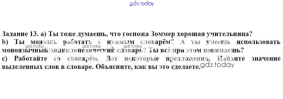 На страницах сайта gdz.today вы найдете учебный и вспомогательный материал, направленный на улучшения знаний школьной программы. ГДЗ - онлайн мир знаний Раздел 5 Решение к главе 2. Но теперь давно уже школа! 13 Учебнику по Немецкому языку для 8 класса Бим, Садомова Просвещение 2014