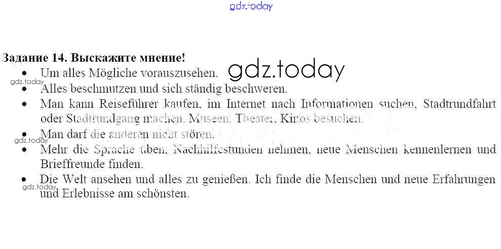 На страницах сайта gdz.today вы найдете учебный и вспомогательный материал, направленный на улучшения знаний школьной программы. ГДЗ - онлайн мир знаний Раздел 2 Решение к главе 3. Мы готовимся к путешествию по Германии 14 Учебнику по Немецкому языку для 8 класса Бим, Садомова Просвещение 2014
