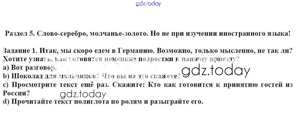 На страницах сайта gdz.today вы найдете учебный и вспомогательный материал, направленный на улучшения знаний школьной программы. ГДЗ - онлайн мир знаний Раздел 5 Решение к главе 3. Мы готовимся к путешествию по Германии 1 Учебнику по Немецкому языку для 8 класса Бим, Садомова Просвещение 2014