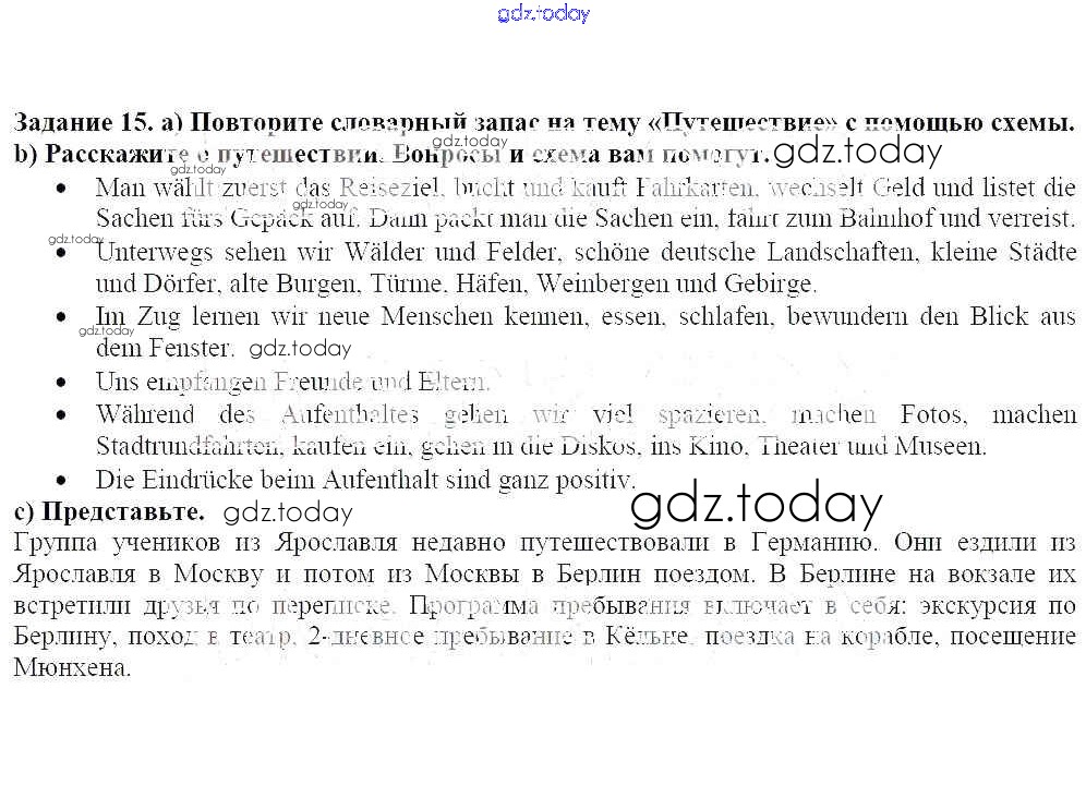 На страницах сайта gdz.today вы найдете учебный и вспомогательный материал, направленный на улучшения знаний школьной программы. ГДЗ - онлайн мир знаний Раздел 2 Решение к главе 4. Путешествие по Федеративной Республике Германия 15 Учебнику по Немецкому языку для 8 класса Бим, Садомова Просвещение 2014