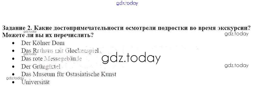 На страницах сайта gdz.today вы найдете учебный и вспомогательный материал, направленный на улучшения знаний школьной программы. ГДЗ - онлайн мир знаний Раздел 5 Решение к главе 4. Путешествие по Федеративной Республике Германия 2 Учебнику по Немецкому языку для 8 класса Бим, Садомова Просвещение 2014