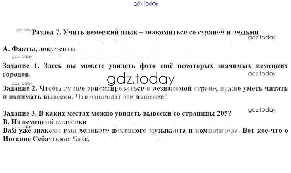 На страницах сайта gdz.today вы найдете учебный и вспомогательный материал, направленный на улучшения знаний школьной программы. ГДЗ - онлайн мир знаний Раздел 7 Решение к главе 4. Путешествие по Федеративной Республике Германия Факты, документы Учебнику по Немецкому языку для 8 класса Бим, Садомова Просвещение 2014