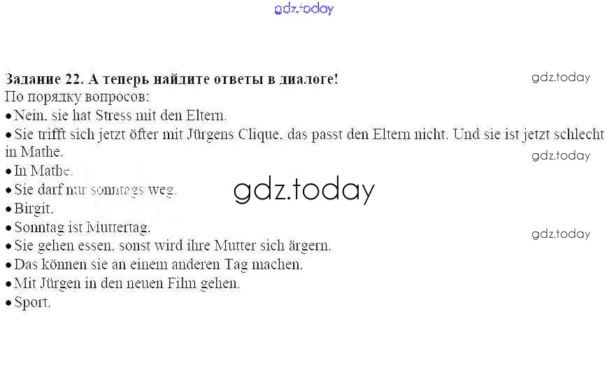 На страницах сайта gdz.today вы найдете учебный и вспомогательный материал, направленный на улучшения знаний школьной программы. ГДЗ - онлайн мир знаний Решение к уроку 1. Друзья и семья 22 Учебнику по Немецкому языку для 8 класса Радченко, Хебелер Дрофа Alles Klar! 2015