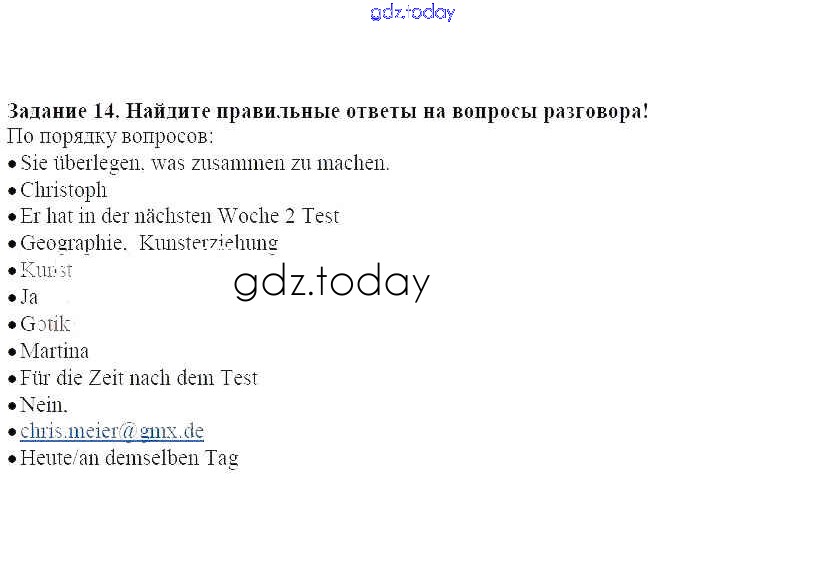 На страницах сайта gdz.today вы найдете учебный и вспомогательный материал, направленный на улучшения знаний школьной программы. ГДЗ - онлайн мир знаний Решение к уроку 2. Всё в порядке! 14 Учебнику по Немецкому языку для 8 класса Радченко, Хебелер Дрофа Alles Klar! 2015