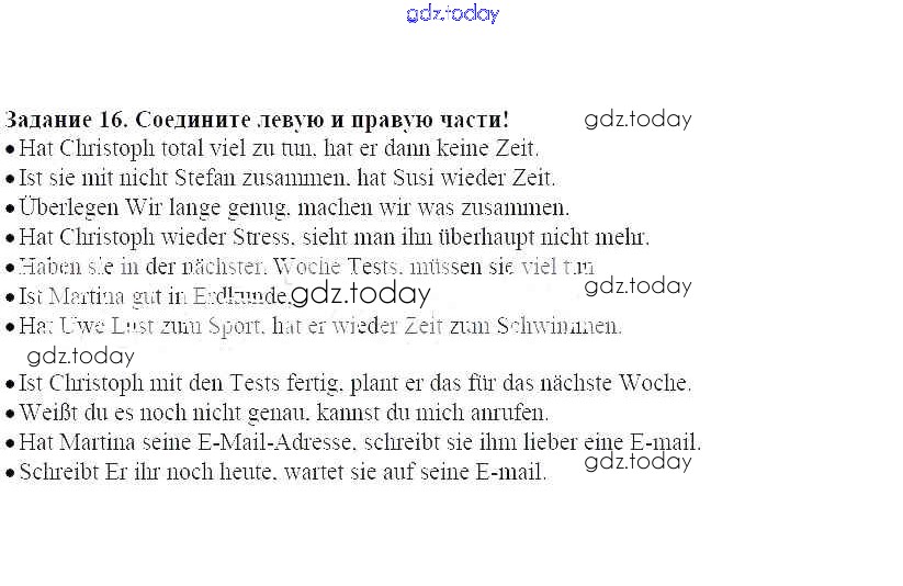 На страницах сайта gdz.today вы найдете учебный и вспомогательный материал, направленный на улучшения знаний школьной программы. ГДЗ - онлайн мир знаний Решение к уроку 2. Всё в порядке! 16 Учебнику по Немецкому языку для 8 класса Радченко, Хебелер Дрофа Alles Klar! 2015
