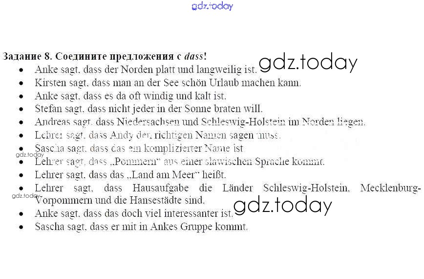 На страницах сайта gdz.today вы найдете учебный и вспомогательный материал, направленный на улучшения знаний школьной программы. ГДЗ - онлайн мир знаний Решение к уроку 4. На севере Германии 8 Учебнику по Немецкому языку для 8 класса Радченко, Хебелер Дрофа Alles Klar! 2015