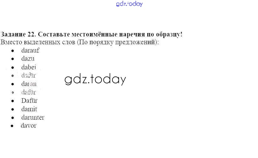 На страницах сайта gdz.today вы найдете учебный и вспомогательный материал, направленный на улучшения знаний школьной программы. ГДЗ - онлайн мир знаний Решение к уроку 9. Подростки за городом 22 Учебнику по Немецкому языку для 8 класса Радченко, Хебелер Дрофа Alles Klar! 2015