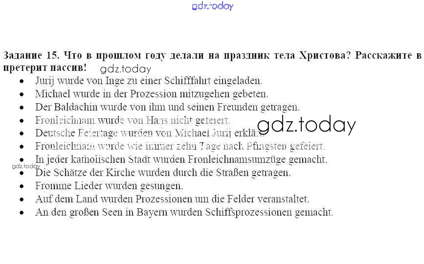 Ответы к Решение к уроку 11. Троица, Майское дерево и другие праздники 15 Учебнику по Немецкому языку для 8 класса Радченко, Хебелер Дрофа Alles Klar! 2015