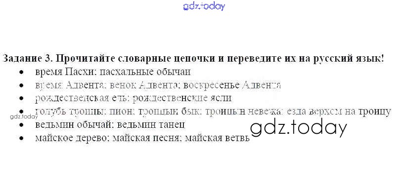 На страницах сайта gdz.today вы найдете учебный и вспомогательный материал, направленный на улучшения знаний школьной программы. ГДЗ - онлайн мир знаний Решение к уроку 11. Троица, Майское дерево и другие праздники 3 Учебнику по Немецкому языку для 8 класса Радченко, Хебелер Дрофа Alles Klar! 2015