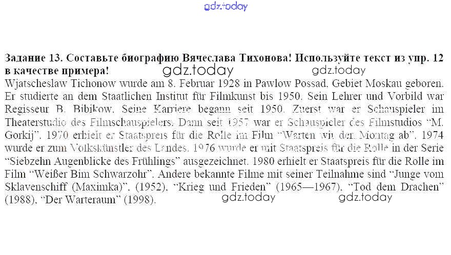 Ответы к Решение к уроку 12. Кино вчера и сегодня 13 Учебнику по Немецкому языку для 8 класса Радченко, Хебелер Дрофа Alles Klar! 2015
