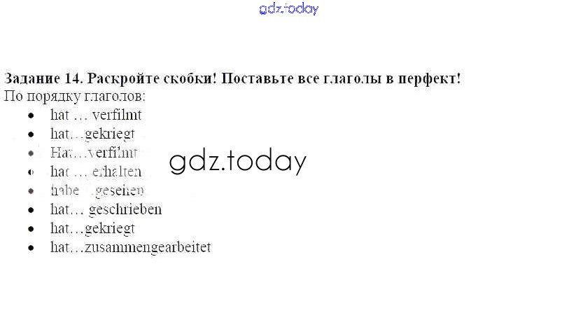 На страницах сайта gdz.today вы найдете учебный и вспомогательный материал, направленный на улучшения знаний школьной программы. ГДЗ - онлайн мир знаний Решение к уроку 12. Кино вчера и сегодня 14 Учебнику по Немецкому языку для 8 класса Радченко, Хебелер Дрофа Alles Klar! 2015