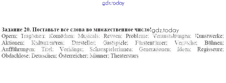 На страницах сайта gdz.today вы найдете учебный и вспомогательный материал, направленный на улучшения знаний школьной программы. ГДЗ - онлайн мир знаний Решение к уроку 13. Жизнь – это театр 20 Учебнику по Немецкому языку для 8 класса Радченко, Хебелер Дрофа Alles Klar! 2015