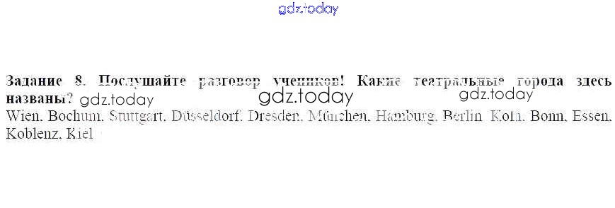 На страницах сайта gdz.today вы найдете учебный и вспомогательный материал, направленный на улучшения знаний школьной программы. ГДЗ - онлайн мир знаний Решение к уроку 13. Жизнь – это театр 8 Учебнику по Немецкому языку для 8 класса Радченко, Хебелер Дрофа Alles Klar! 2015