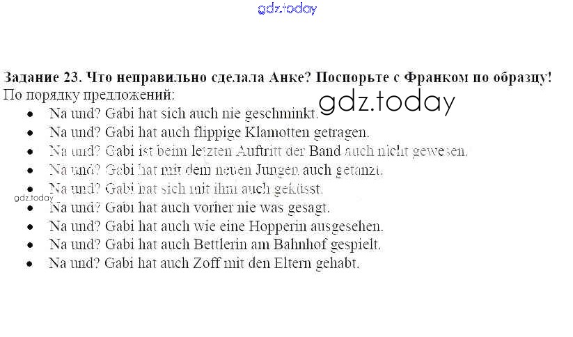 На страницах сайта gdz.today вы найдете учебный и вспомогательный материал, направленный на улучшения знаний школьной программы. ГДЗ - онлайн мир знаний Решение к уроку 15. Любовь и мода 23 Учебнику по Немецкому языку для 8 класса Радченко, Хебелер Дрофа Alles Klar! 2015