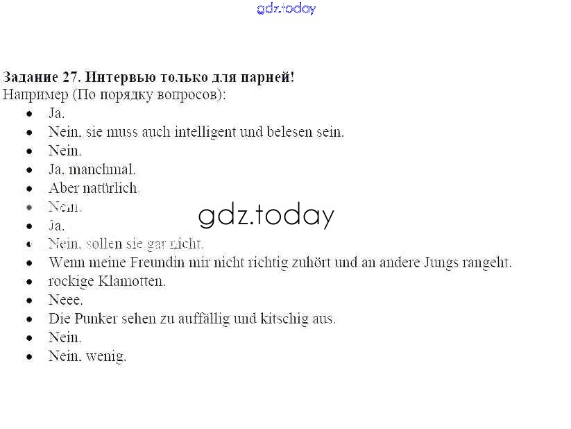 На страницах сайта gdz.today вы найдете учебный и вспомогательный материал, направленный на улучшения знаний школьной программы. ГДЗ - онлайн мир знаний Решение к уроку 15. Любовь и мода 27 Учебнику по Немецкому языку для 8 класса Радченко, Хебелер Дрофа Alles Klar! 2015